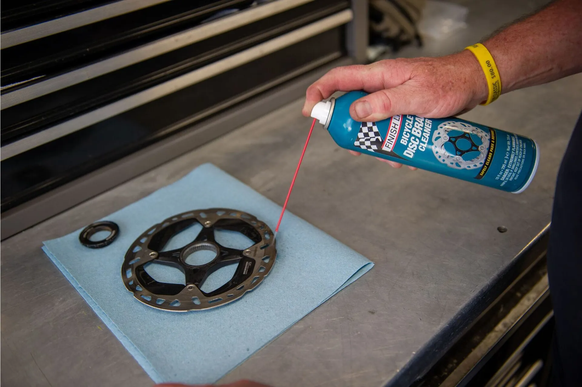 Designed to leave zero residue after application, Finish Line's Bicycle Disc Brake Cleaner will displace any moisture built up on the pad or rotor, resulting in improved and predictable braking, and reduced brake squeal. With the unique characteristic of being acetone free, it's strong enough to clean the dirtiest rotors, yet safe enough to use around paint, carbon fibre and plastic parts.